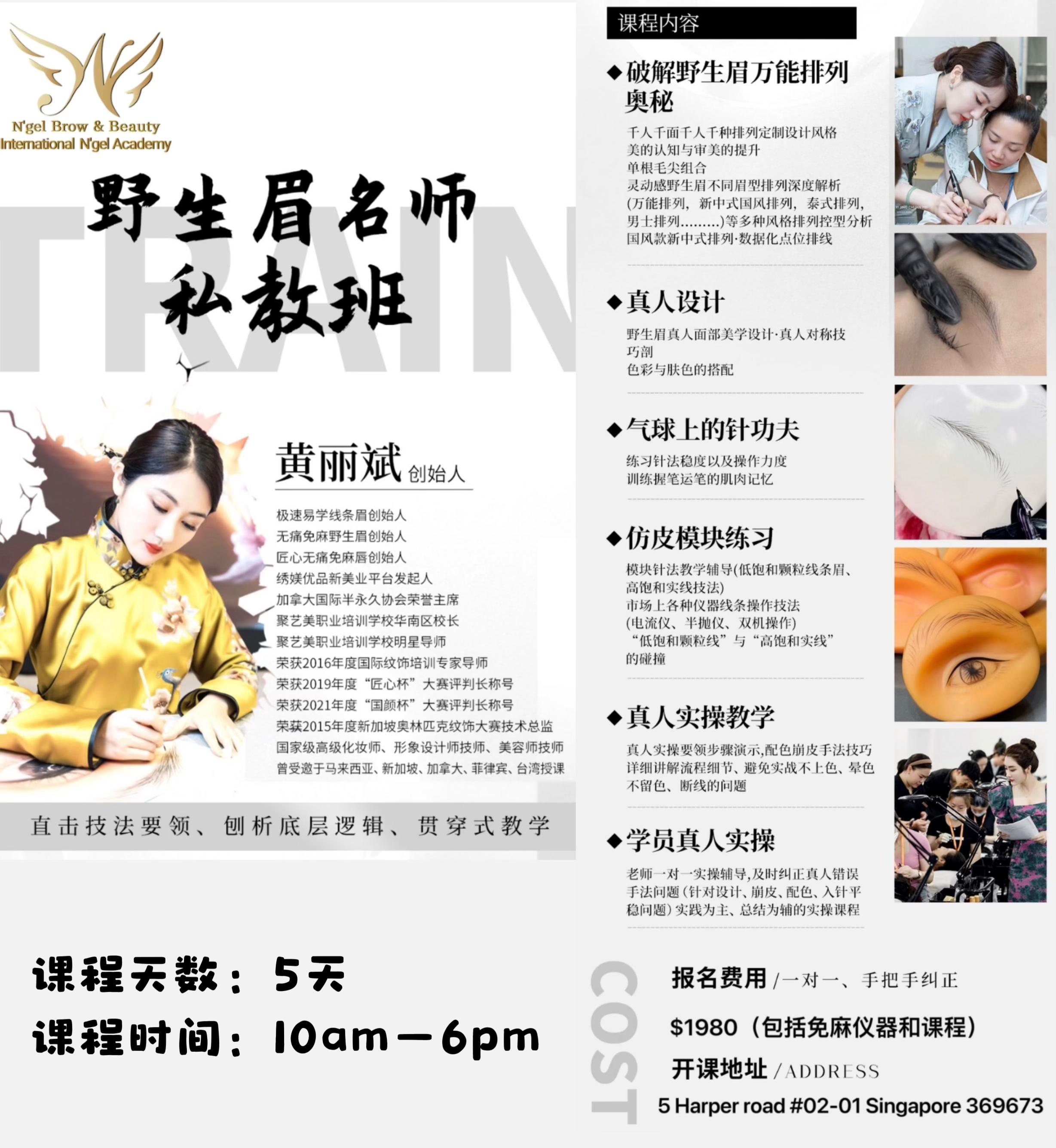 第一天:风格设计和骨相排列(万能排列,新中式排列,泰式排列,男士排列...); 第二天:真人设计,色彩与肤色搭配,气球上的针工夫,电流仪,...